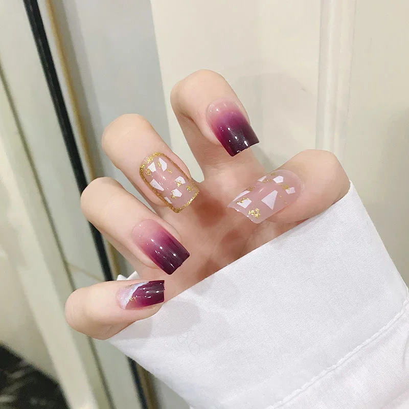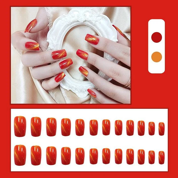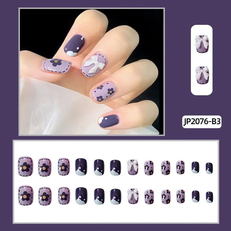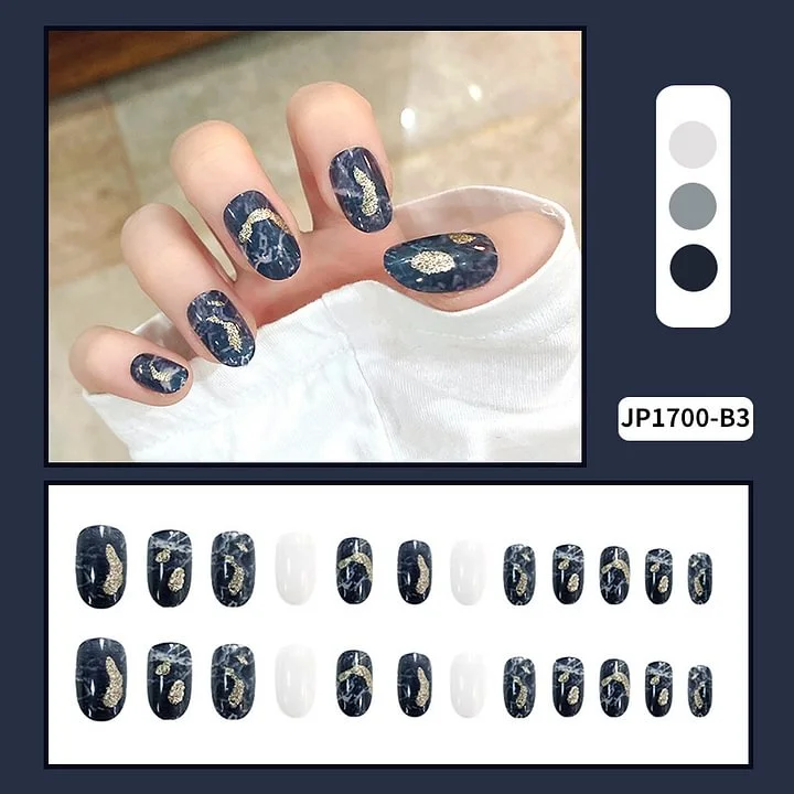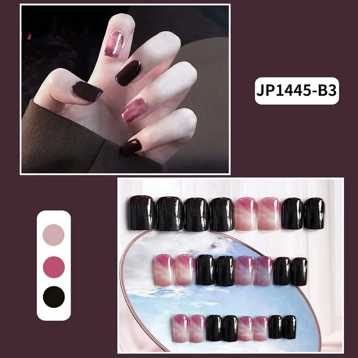 24Pcs Faux Ongles avec feuilles colle de gelée