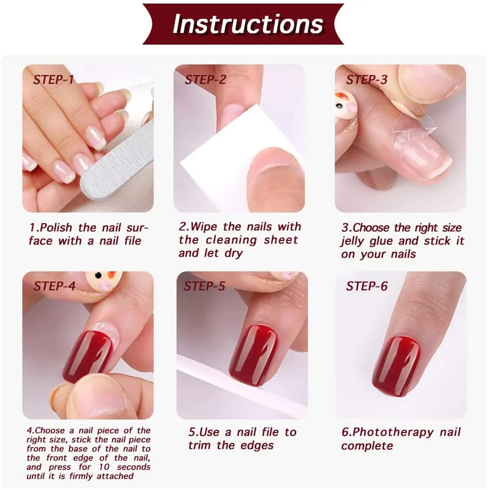 Matière: En ABS. Lisse, durable et sûr. Avec la colle de gelée, facile à appliquer et à enlever, ne pas endommager vos ongles.
