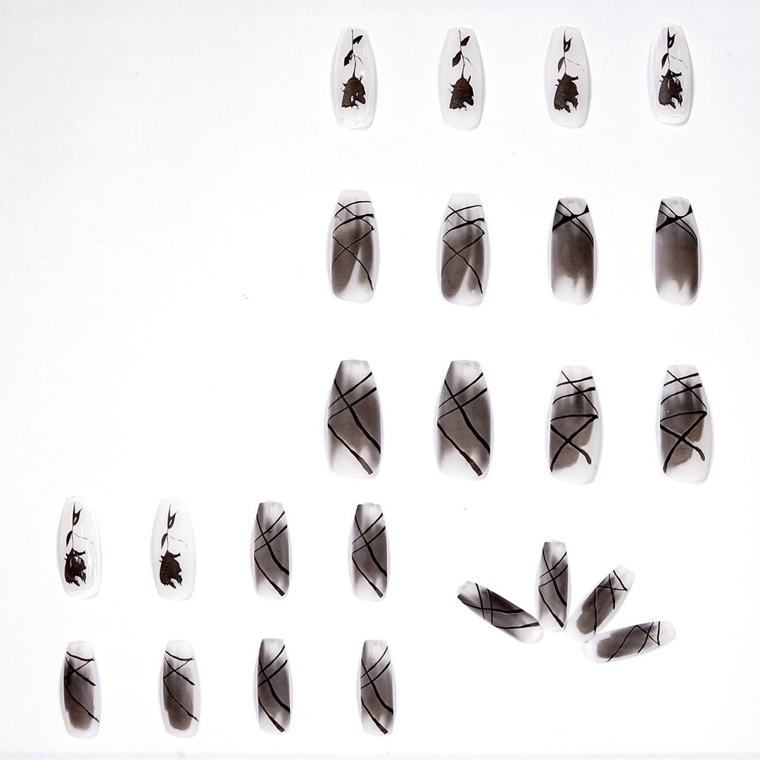 24Pcs Faux Ongles avec feuilles colle de gelée B35