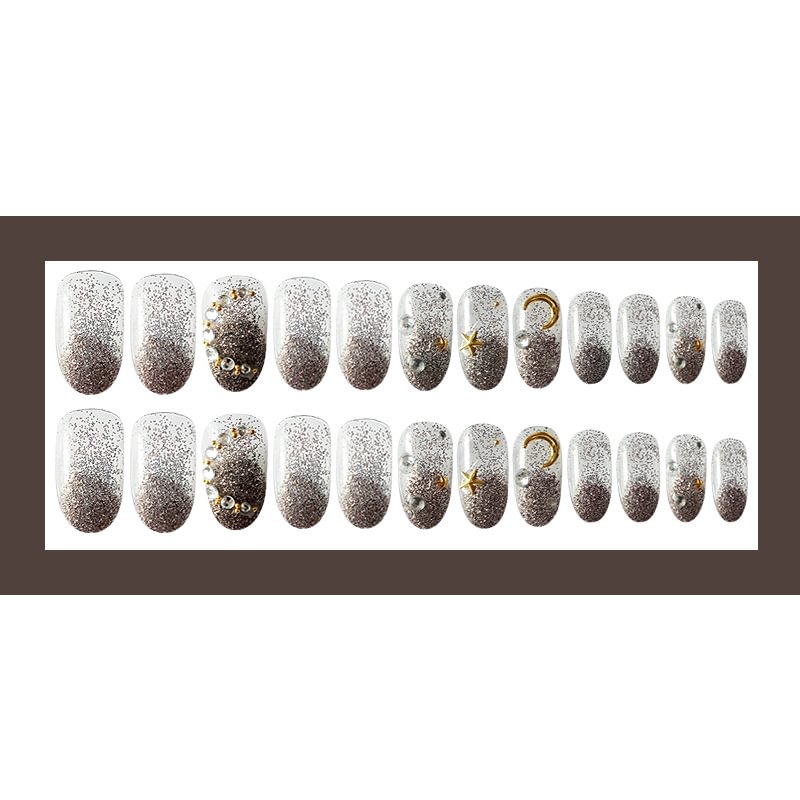 24Pcs Faux Ongles avec feuilles colle de gelée C27