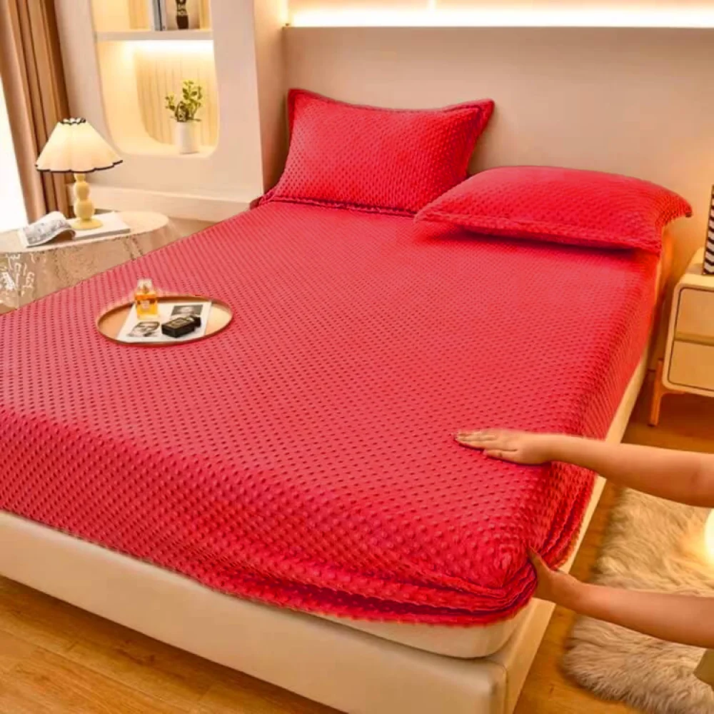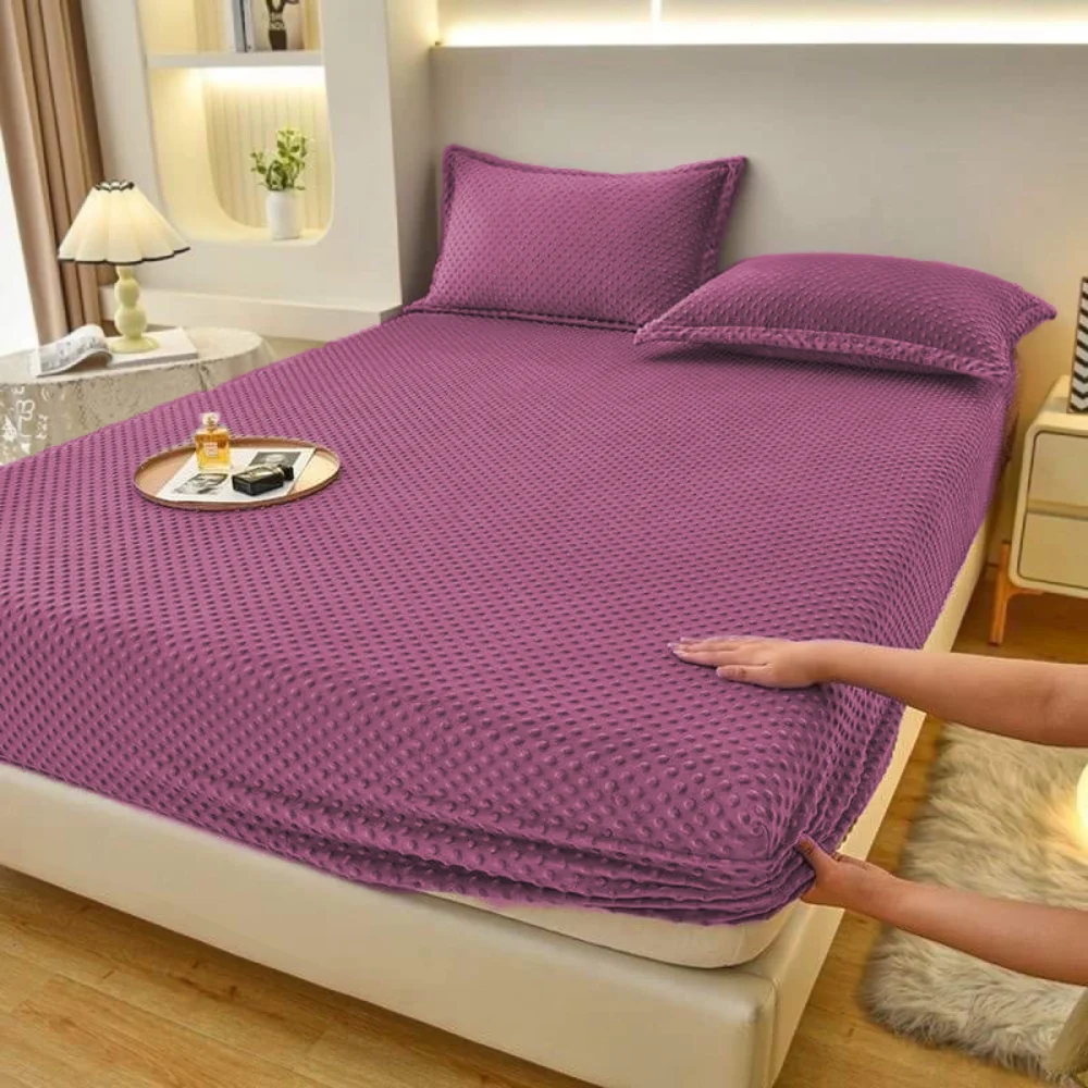 Couvre lit élastiqué en flanelle confortable ,idéal pour un lit à deux place avec deux caches coussins
