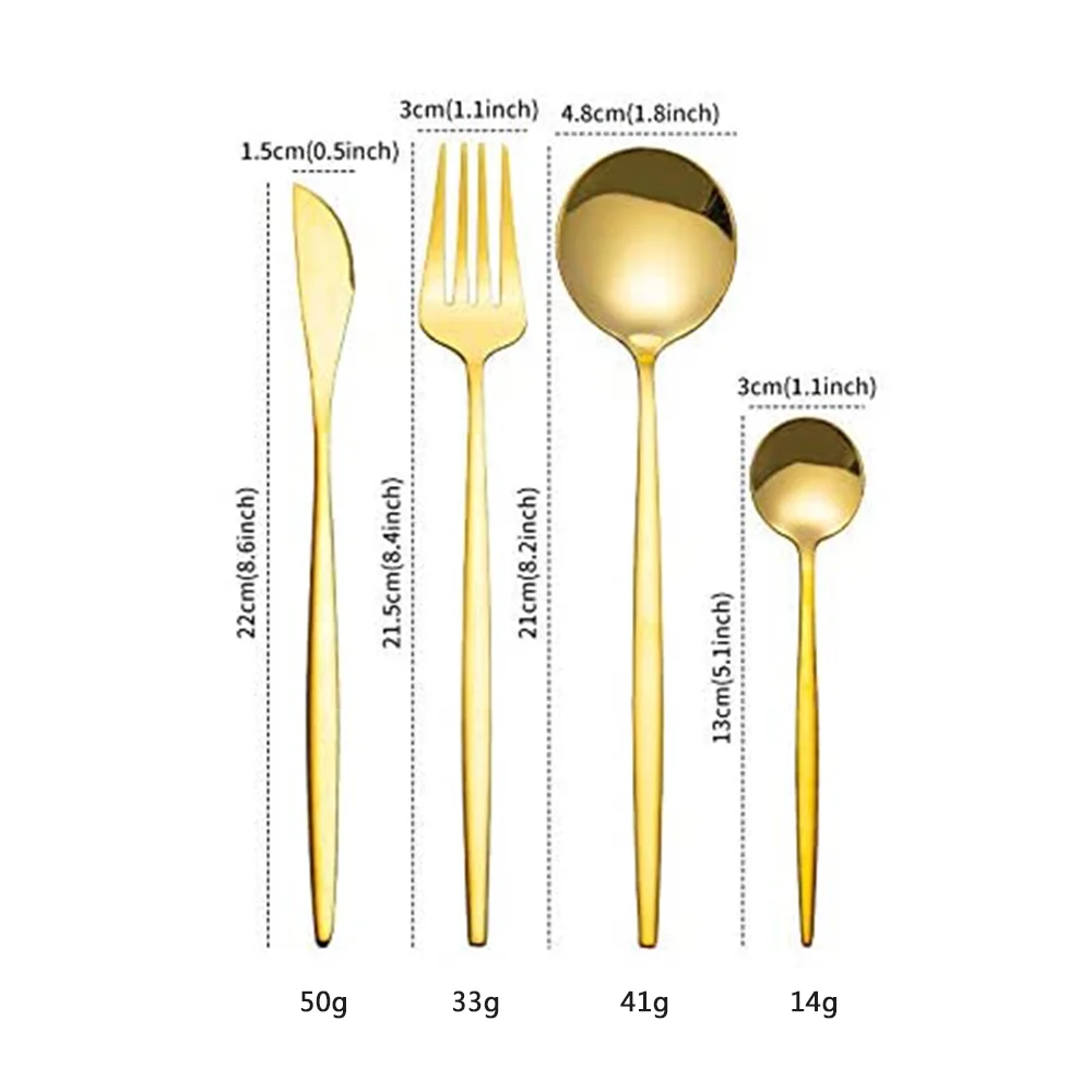 Design Classique: le set de couverts en acier inoxydable poli à haute brillance a non seulement une excellente qualité, mais peut également créer des effets visuels subtils sur le dessus de table. La surface propre, élégante et lisse et le polissage miroir garantissent que les couverts gardent toujours leurs éclat.