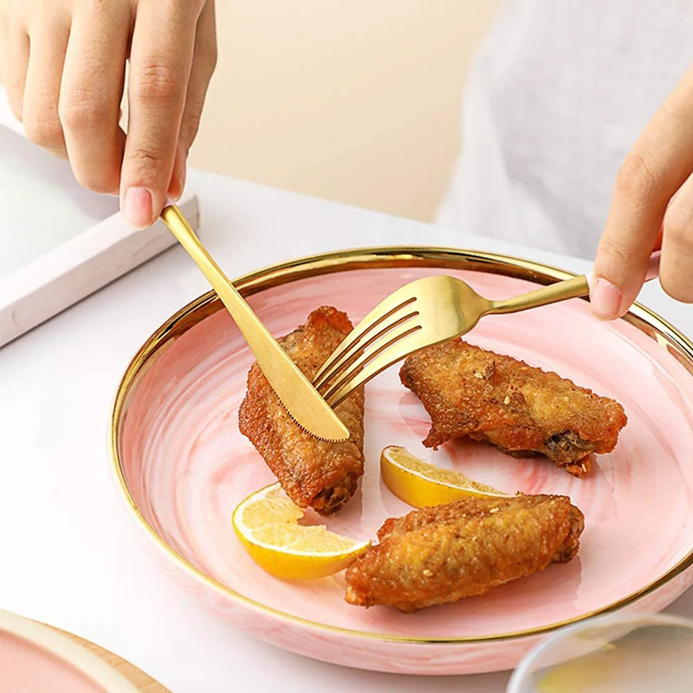 【Design simple】 Ensemble de couteaux et fourchettes avec une apparence simple sans décoration subtile, un design classique pour s’adapter à tous les styles de dîners et de cuisine.